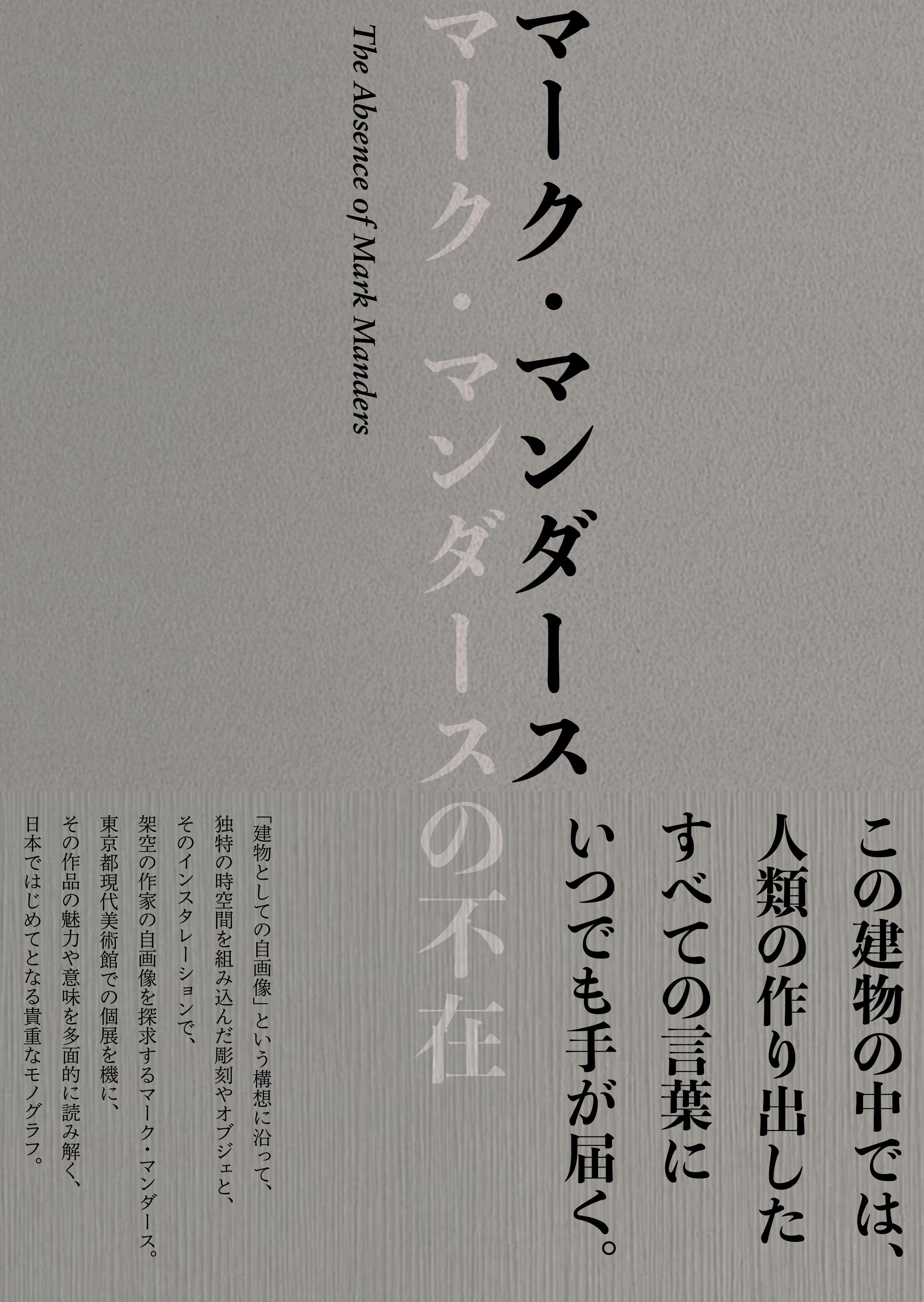 東京都現代美術館では、現代のアートシーンに独自の位置を占める作家、マーク・マンダースの、国内美術館では初となる個展を開催します。